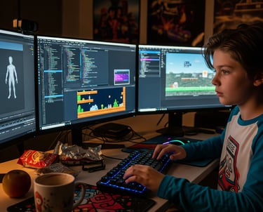 Wir bauen großartige Welten, programmieren unsere Spielelogik und entwerfen eigene 3D Objekte für unser Spiel.